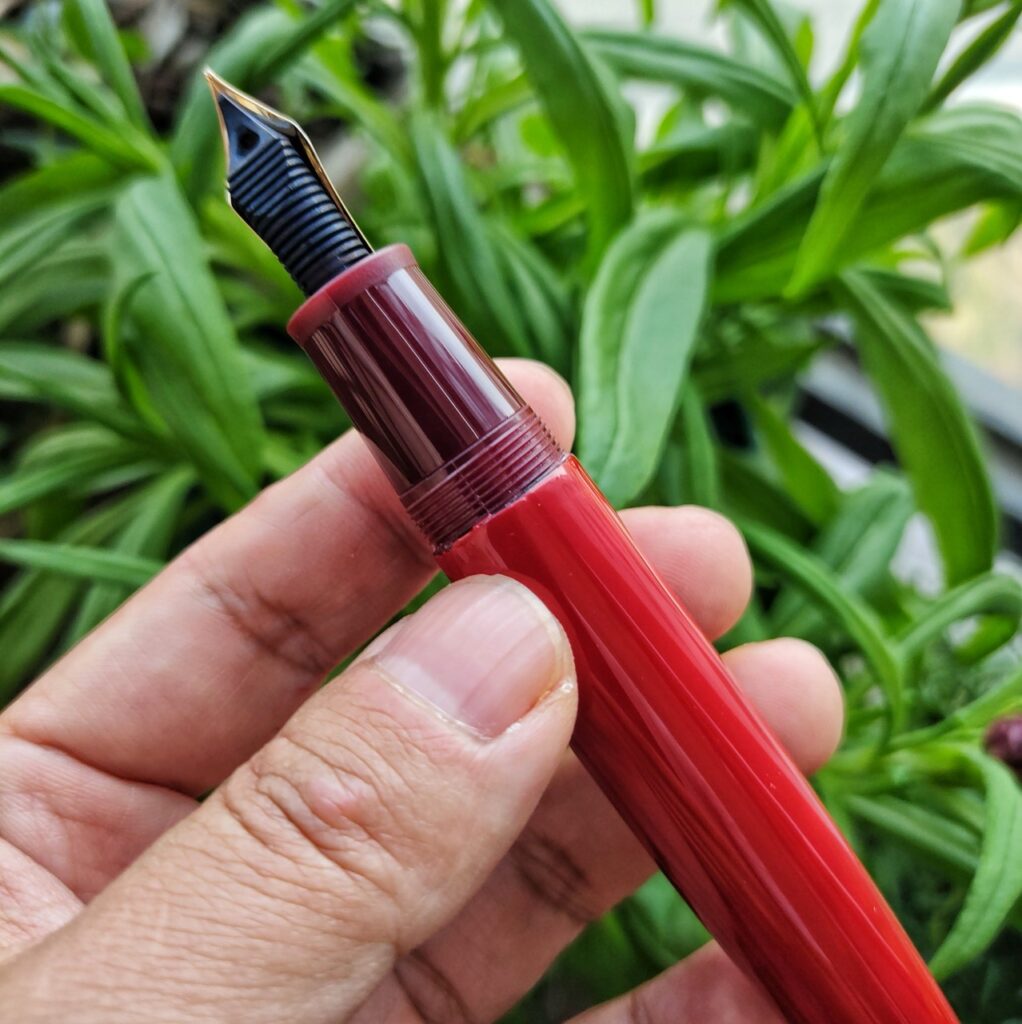 We used a burgundy 9019 and applied a layer of red lacquer to the outside of the barrel. The other accessories, such as the clip, ring, and nib, are exactly the same as the original Jinhao. Because we applied the lacquer first and then sent the barrel back to Jinhao, they helped us install these accessories.